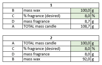Make it yourself easier? Donwload the xlsx-file here: https://nchem.eu/CANDLEWAX_CALCULATOR.xlsx